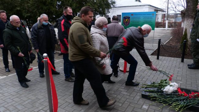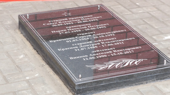 Он был воздвигнут по инициативе их действующих коллег как дань уважения подвигу сослуживцев. На мраморной плите выбиты имена и фамилии пяти героев. Трое из них погибли в боях по защите Приднестровской Молдавской Республики в 1992-м году, двое – во время службы в мирное время, сообщает пресс-служба Министерства госбезопасности ПМР.