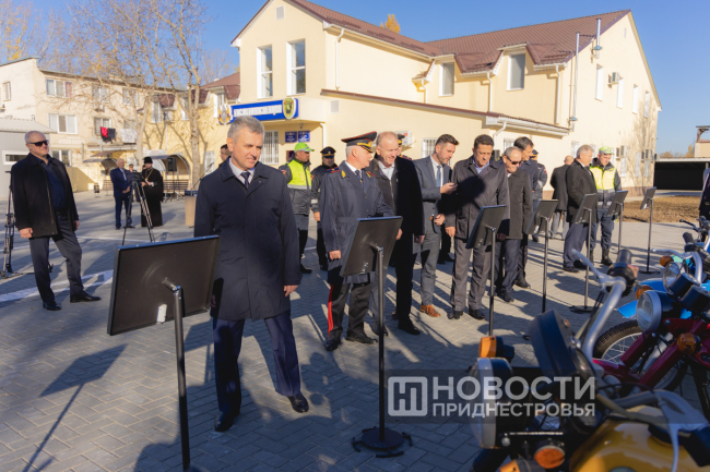 «Сегодня в истории бендерского УВД знаменательный день - открытие нового здания ГАИ и МРЭО. Ветераны службы прекрасно помнят те условия, в которых приходилось работать. Это было старое, дореволюционное здание. Оно было неудобно ни для самих сотрудников, ни для автолюбителей. Сейчас его удалось привести в надлежащее состояние», - отметил Президент Вадим Красносельский.