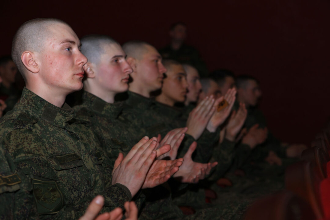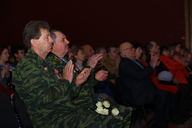 В зале собрались ветераны войны в Афганистане и члены их семей, военнослужащие, представители общественных и образовательных учреждений.