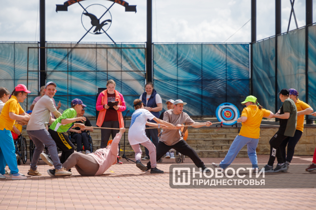В спартакиаде приняли участие более 30 воспитанников Республиканского реабилитационного центра для детей с инвалидностью. Многие из них находятся в хорошей физической форме, так как тренируются в бендерском центре для параспортсменов «Инвапанспорт». Ребятам, которые не могли самостоятельно участвовать в конкурсах, уже по сложившейся традиции помогали волонтеры из бендерской школы № 15. После разминки начались основные соревнования: эстафета, стрельба из лука, конкурс капитанов.