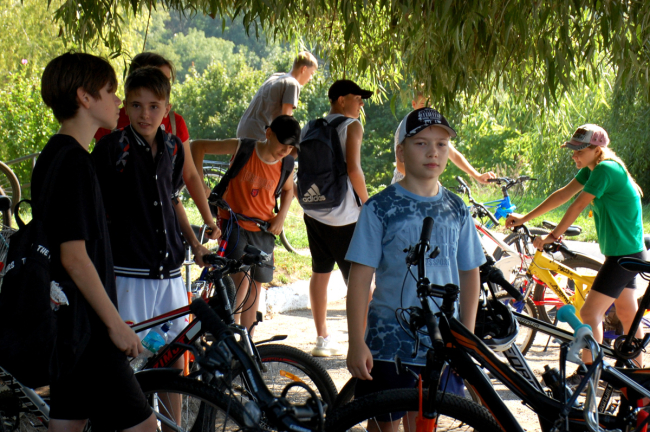 Учитель физкультуры средней школы № 4 Максим Бондарев принял участие в велопробеге во главе школьной команды из трех человек. Собрать больше не получилось – все-таки каникулы, многих школьников попросту нет в городе.