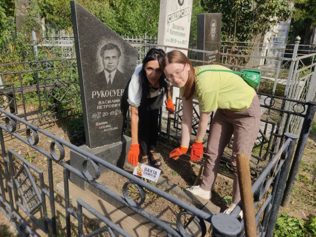 На площади Освобождения активисты оформили инсталляцию «Журавли нашей памяти», на которой разместили портреты фронтовиков. А на центральном кладбище участники акции убирали места захоронений бойцов.