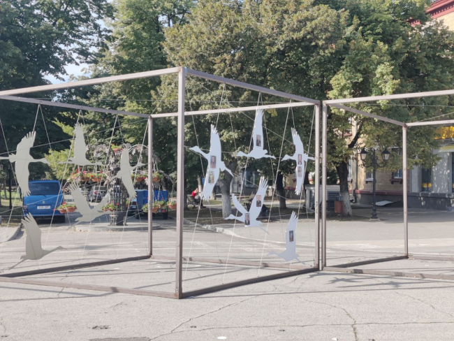 На площади Освобождения активисты разместили портреты фронтовиков