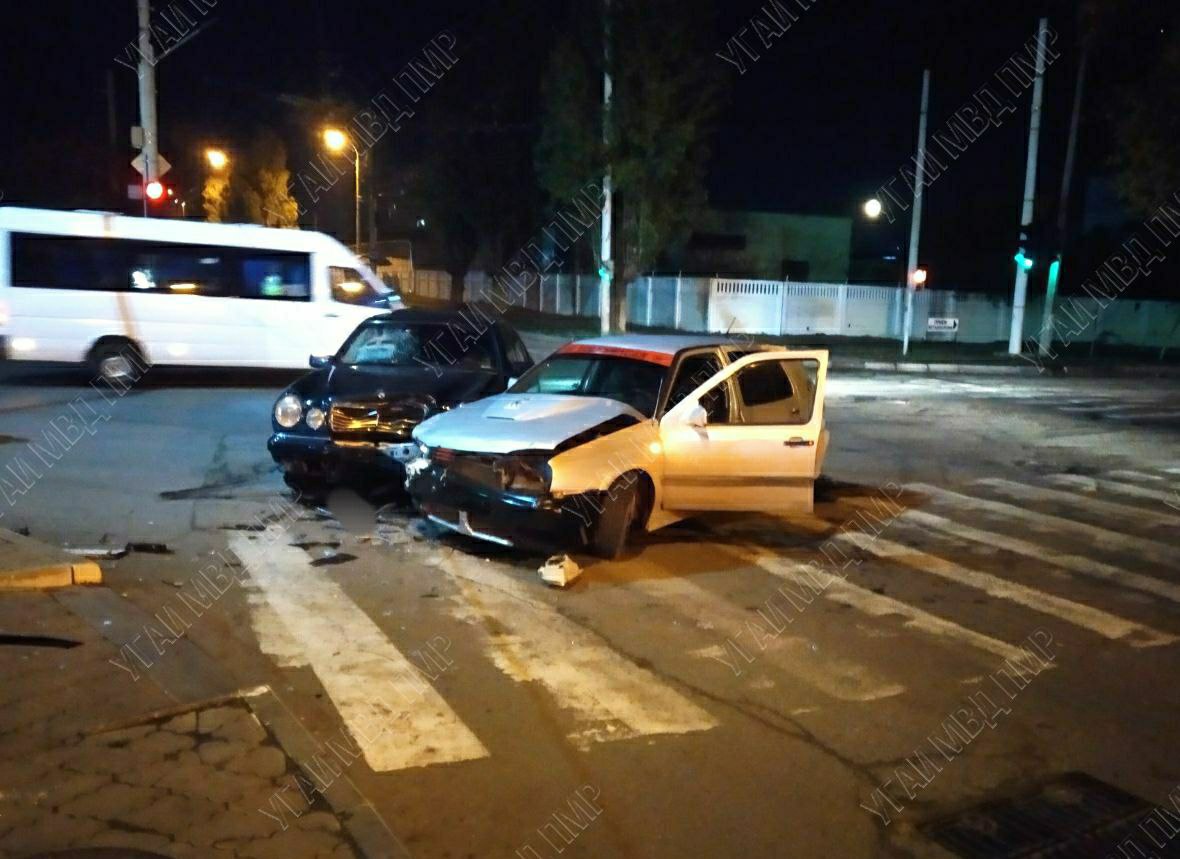 «Фольксваген» и «Мерседес» двигались навстречу друг другу, для обоих горел зелёный сигнал светофора. Но на перекрёстке 23-летний водитель «Фольксвагена» повернул налево и не уступил дорогу чёрной легковушке. Произошло столкновение, сообщает пресс-служба МВД ПМР.