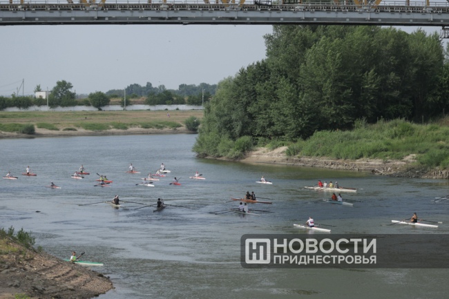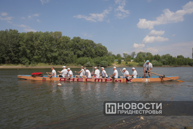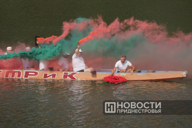 Уже в 16:45 прозвучала общереспубликанская сирена – Минута молчания по погибшим в Бендерах. Именно в это время в 1992 году в городе начались бои. Около 20 лодок стройным ходом двинулись по Днестру. Центральный «дракон», на котором находились спортсмены-ветераны, нёс дымовую шашку в цветах флага Приднестровья.
