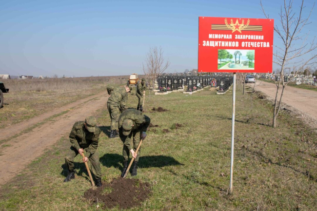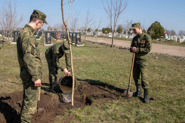 Бендеры, 21 марта. /Новости Приднестровья/. Военнослужащие Учебного центра высадили клёны на участке Борисовского кладбища, где захоронены защитники Отечества.