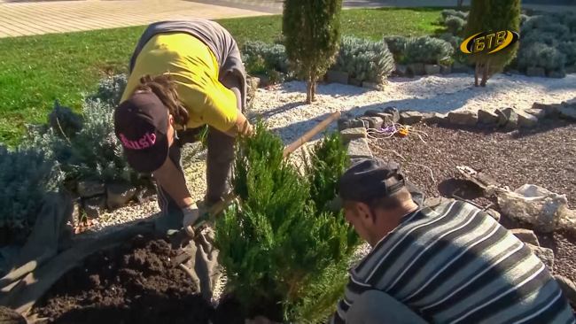 Бендерские озеленители продолжают реализовывать ещё один проект. Все цветочные локации украшают галькой, гранитной крошкой и лёгким пористым известняком. Говорят, что на такой каменистой поверхности хорошо сморятся туи, ели, кипарисы и можжевельник. Сейчас самое время для высадки этих вечнозелёных кустарников.