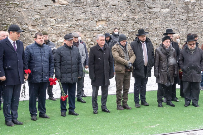 Памятно-информационную плиту открыли сегодня Президент Вадим Красносельский и почетные гости, прибывшие в Бендеры для участия в траурных мероприятиях, приуроченных ко Дню жертв Холокоста. Возложив к плите цветы, участники церемонии прошли в храм Александра Невского, расположенный на территории одноименного парка возле Бендерской крепости, где зажгли поминальные свечи.