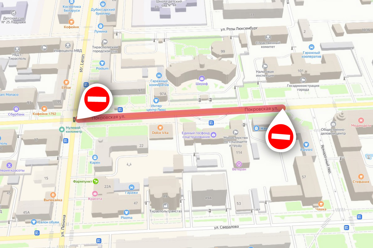 В центре Тирасполя до конца апреля перекрыта часть улицы Покровской