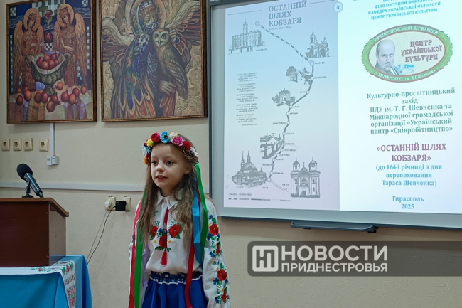 Тирасполь, 22 мая. /Новости Приднестровья/. В Приднестровском госуниверситете состоялось культурно-просветительское мероприятие, посвященное памяти великого поэта и писателя Тараса Шевченко. В Центре украинской культуры преподаватели, школьники и студенты говорили о творчестве Кобзаря и читали его стихотворения. Среди приглашённых гостей — представители Посольства Украины в РМ.