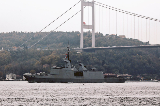 20 Ноя., 2017, 10:41Ракетный «фрегат-невидимка» ВМС Франции класса La Fayette вошел в акваторию Черного моря. Как сообщает РИА «Новости», информация и фотографии появились на странице микроблога Twitter турецких споттеров, отслеживающих пути движения военных кораблей через Босфор.