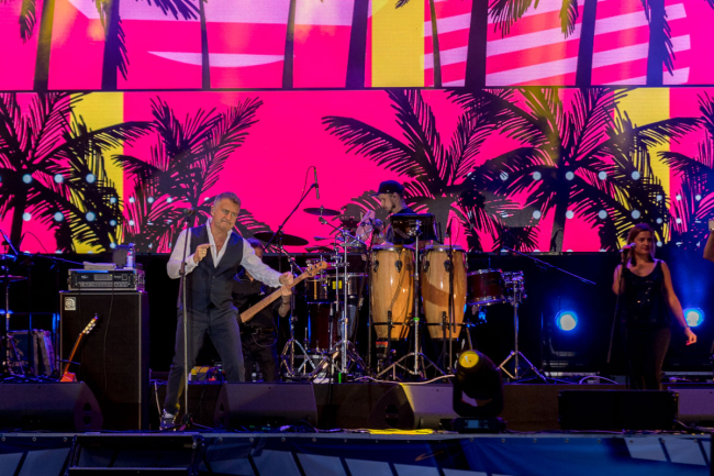 Вокалиста, композитора и заслуженного артиста РФ Леонида Агутина зрители встретили с восторгом, как и его проверенные временем хиты «Парень чернокожий», «Самба» и «Хоп-хей, ла-ла-лей», а на «Половине сердца» подпевали и танцевали уже все.