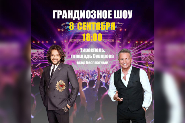 «На разогреве выступит молдавская группа Millenium, затем на сцену выйдет Леонид Агутин, а после него – Филипп Киркоров. Планируется, что каждый артист будет выступать не менее часа. Король российской эстрады Филипп Киркоров по традиции выступит со своей балетной группой – это команда из около 60-ти человек. Шоу будет ярким и зрелищным, уверен, что зрителям оно запомнится надолго. Завершит концерт праздничный салют», - рассказал в интервью журналистам заместитель коммерческого директора ЗАО «Интерднестрком» Игорь Корнев.