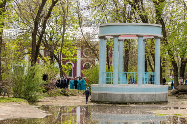 Ещё одна парковая изюминка – лебединый дворец. Когда-то здесь жили лебеди, плавала рыба, цвели лилии. Сейчас всего этого нет, но в перспективе сотрудники парка надеются вернуть дворцу прежний облик.