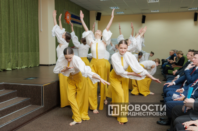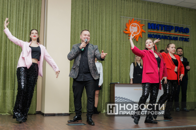 Торжественное собрание сопровождалось концертной программой. Энергетиков поздравляли заслуженные артисты ПМР Дмитрий Кадын и Екатерина Кучерявая, а также столичный коллектив современного танца «Фантазия».