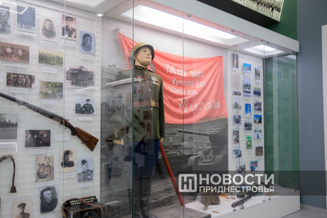 Среди экспонатов – скульптурные портреты маршалов Победы, образцы обмундирования военных лет, фотографии, документы, оружие, личные вещи подпольщиков и советских военачальников, освобождавших Приднестровье. В их числе – подлинные погоны, которые носил на Кицканском плацдарме командующий 37-й армией генерал-лейтенант Михаил Шарохин, кортик, владельцем которого был командующий 17-й воздушной армией маршал авиации Судец, избитый пулями кусок металла, который использовался в качестве мишени во время подготовки к Ясско-Кишиневской операции.