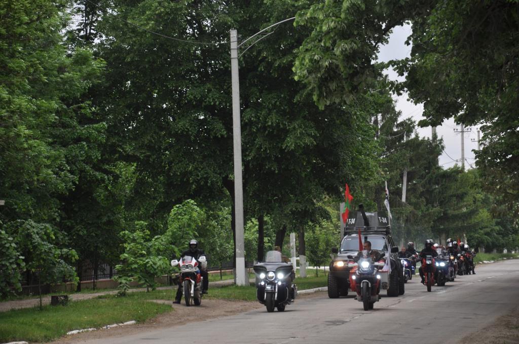 Участники мероприятия возложили цветы к Мемориалу Славы в городском парке и почтили минутой молчания погибших и умерших участников Великой Отечественной войны. В течение дня колонна из около 20 мотоциклов во главе с импровизированным танком Т-34 посетила Мемориалы Славы во всех районах Приднестровья и завершила свой путь в столице республики.