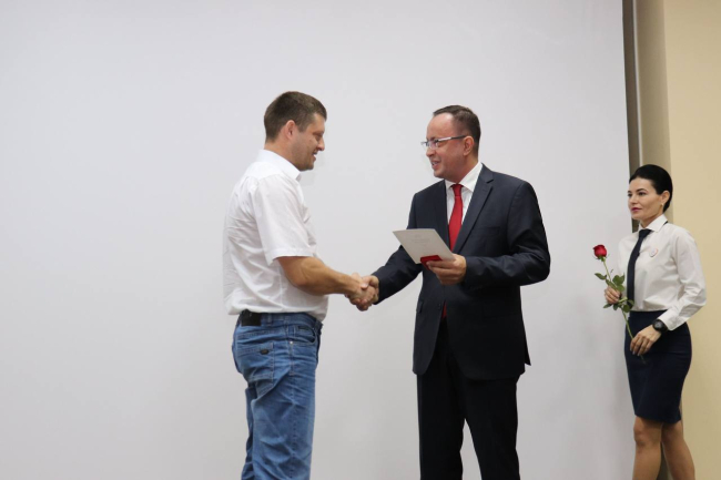 Первую награду – орден «Трудовая Слава» – вручили Сергею Патлатюку. На станции он с 1987 года. Работает на вахте. В реалиях МГРЭС это единый коллектив, который отвечает за бесперебойную работу станции. Говорит, награда – заслуга всех его коллег.