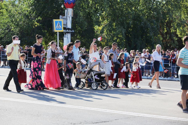 Тирасполь, 2 сентября. /ИА «Новости Приднестровья»/. 26-ю годовщину образования республики в Приднестровье отметили, в том числе, и торжественным шествием семейных династий. Колонну, которая прошла по центру Тирасполя, возглавляли многодетные семьи, где мамы были удостоены звания «Мать-героиня». Сегодня в республике проживает свыше 3800 многодетных семей, где воспитывается почти 13 тысяч детей.