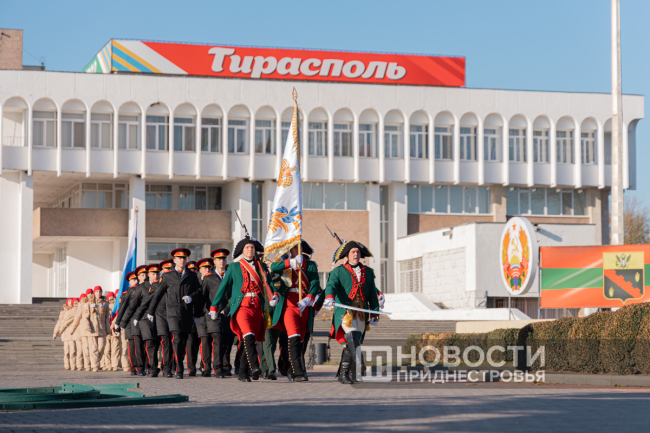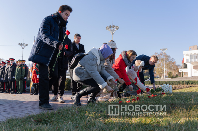 Тирасполь, 24 ноября. /Новости Приднестровья/. Сегодня исполнилось 294 года со дня рождения выдающегося русского полководца Александра Суворова. В честь этого юнармейцы, суворовцы и студенты Приднестровского госуниверситета возложили цветы к памятнику генералиссимусу в Тирасполе.