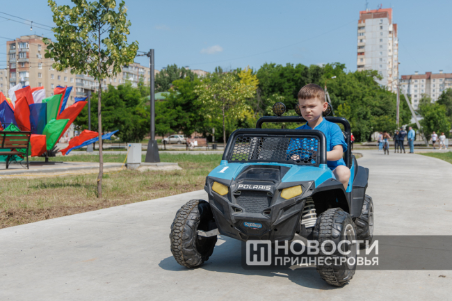 Теперь это место для отдыха с большой детской площадкой и беговыми дорожками. Вечером территория подсвечивается многочисленными лампочками, так же как в столичном сквере Авиаторов. Сегодня по случаю Дня защиты детей и открытия сквера провели праздничную программу. Гостей развлекали аниматоры и творческие коллективы города.