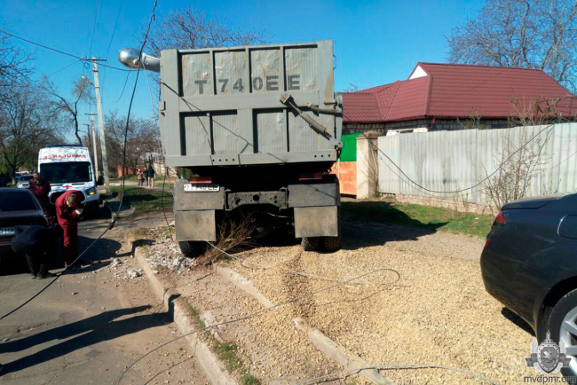 Ещё одно ДТП произошло на улице Краснодонской. Как ранее сообщалось, автомобиль марки ЗИЛ, груженный песком, врезался в электроопору. В результате чего повредил ее и обесточил ближайшие дома.