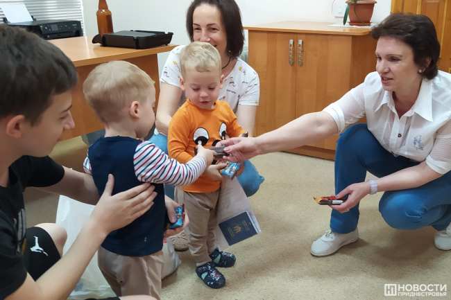 Дубоссары, 31 мая. /Новости Приднестровья/. Детей приехавших в Приднестровье жителей Украины в Дубоссарах сегодня поздравляли с наступающим Днём защиты детей и вручали семьям продуктовые наборы и сладости.