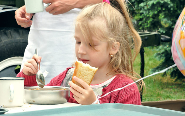 Ветераны дегустировали гречневую кашу с тушенкой и с удовольствием пели военные песни