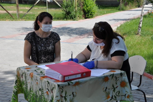 Больше половины семей школы № 4 выбрали продуктовые наборы. Их получали во дворе учебного заведения с соблюдением всех санитарных требований.