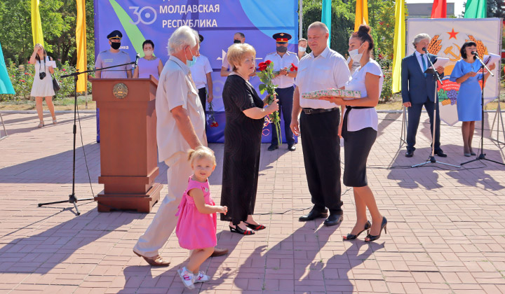 В торжественной обстановке на главной площади города чествовали и дубоссарские семьи, прожившие в браке 50 лет, а также тех, кто создал свою семью в День Республики.