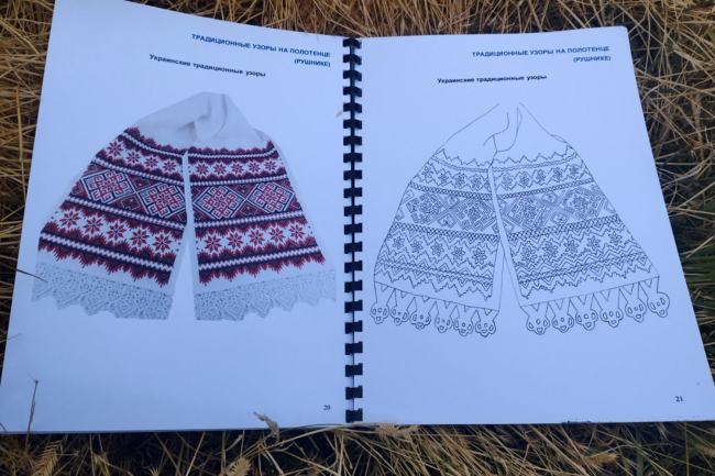 В раскраску вошли изображения не только русских, молдавских и украинских орнаментов, но и предметов быта, национальных костюмов