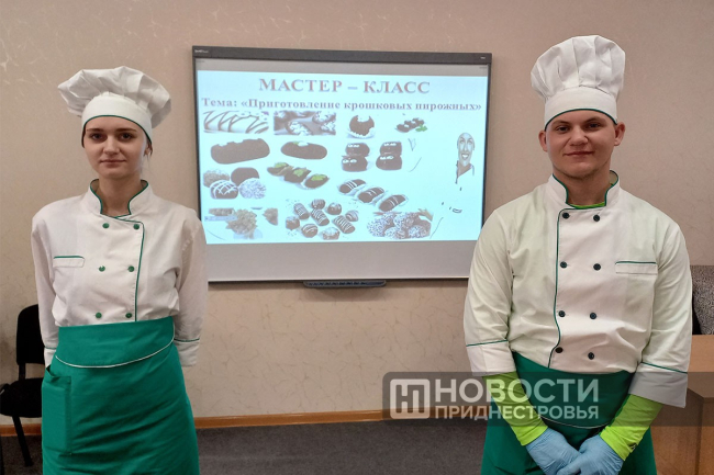 Дубоссары, 12 марта. /Новости Приднестровья/. Студенты Дубоссарского индустриального техникума учили выпускников общеобразовательных школ приготовлению пирожных. Мастер-класс прошел в рамках Республиканского фестиваля «В мире профессий». Он проводится для учащихся 9-х классов школ города и сел района уже третий год. Главная цель – популяризация рабочих профессий среднего звена.