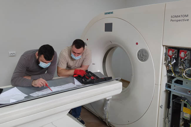 «Мы сейчас находимся на стадии механического монтажа томографа. Через несколько дней закончим механический монтаж, кабелеровку и начнём пусконаладочные работы. Всё идёт по плану, помещение готово, работаем усердно, чтобы быстрее сдать объект. Мы занимаемся этим 10 лет, для нас сложностей нет. Это 16-срезовый томограф эксперт-класса, который позволяет делать много исследований: в день до 80-100 человек», - рассказал представитель компании Siemens в Приднестровье Евгений Костов.