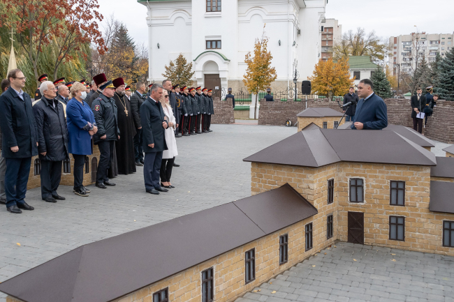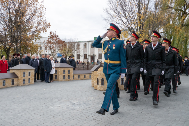 Макет Тираспольской крепости пополнился новыми элементами – знаками 55-го пехотного Подольского, 56-го пехотного Житомирского, Полоцкого и Алексопольского мушкетерских полков. Их открытие приурочили ко Дню народного единства. Участие в праздничном мероприятии принял Президент ПМР Вадим Красносельский. Главу государства сопровождает супруга. Приглашены руководители органов госвласти, городской госадминистрации и местного совета, духовенство, общественность.