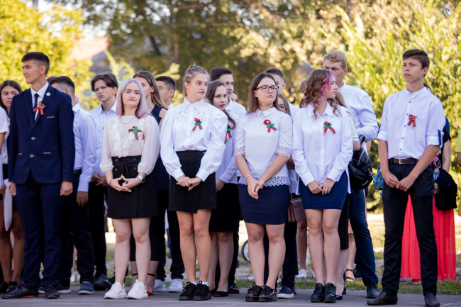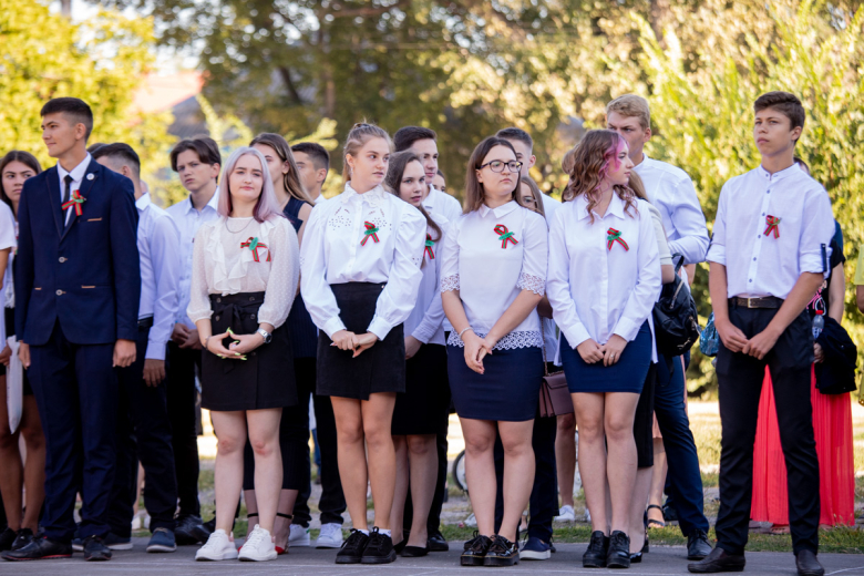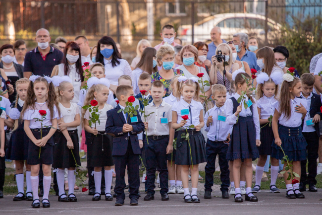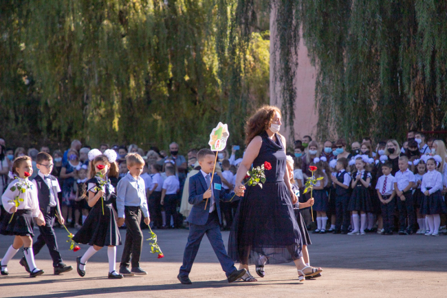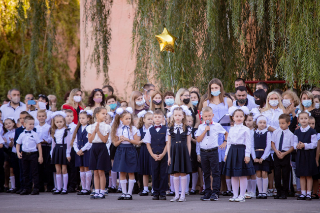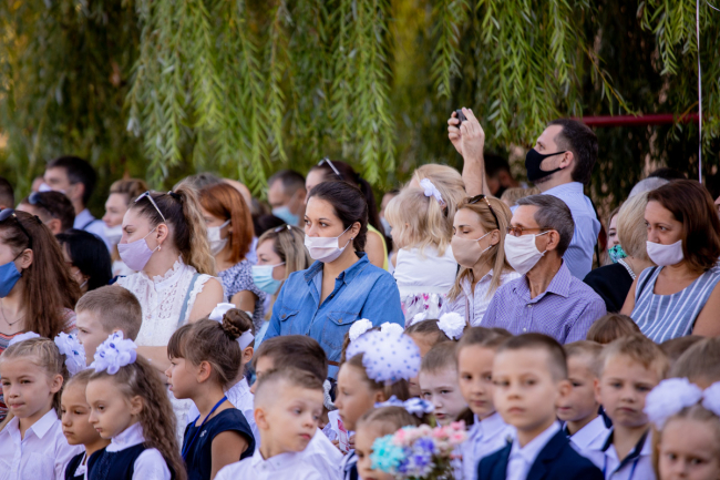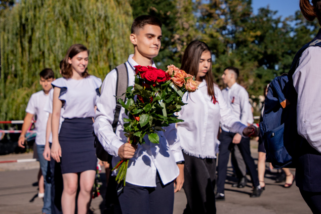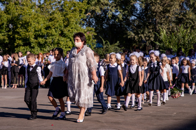 Тирасполь, 1 сентября. /Новости Приднестровья/. В столичной школе № 9 имени Светланы Крупко прошла торжественная линейка, в которой приняли участие учащиеся 1-х и 11-х классов. Мероприятие пришло с соблюдением всех мер безопасности - родители и преподаватели в масках, в руках у школьников цветы без упаковки.