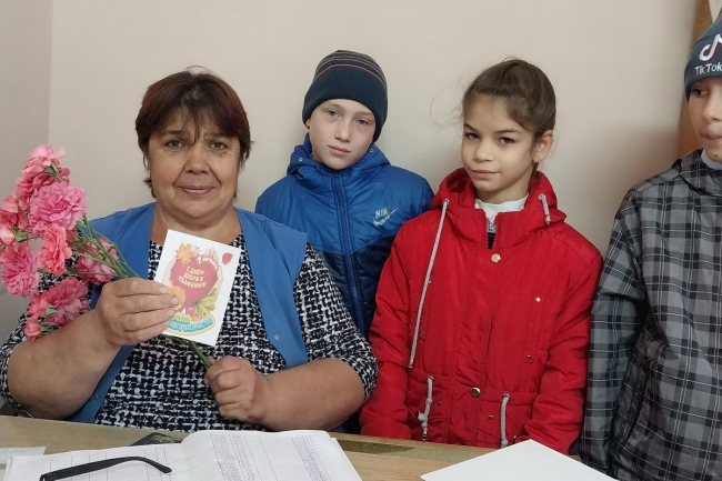 Третьеклассники вместе со своим воспитателем подготовили поздравительные стихотворения и слова благодарности для ветеранов труда школы-интерната. На память им вручили открытки, изготовленные учениками, и цветы.