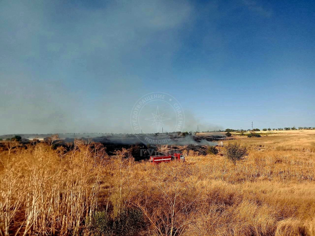 Как сообщает пресс-служба ГУпЧС, неизвестный бросил непотушенную сигарету возле дороги, огонь вспыхнул и перекинулся на поле в районе Консервного завода. В какой-то момент направление ветра резко сменилось и огонь перешел на высокий сухостой, стал распространяться ещё быстрее. Была угроза ферме и жилым домам.