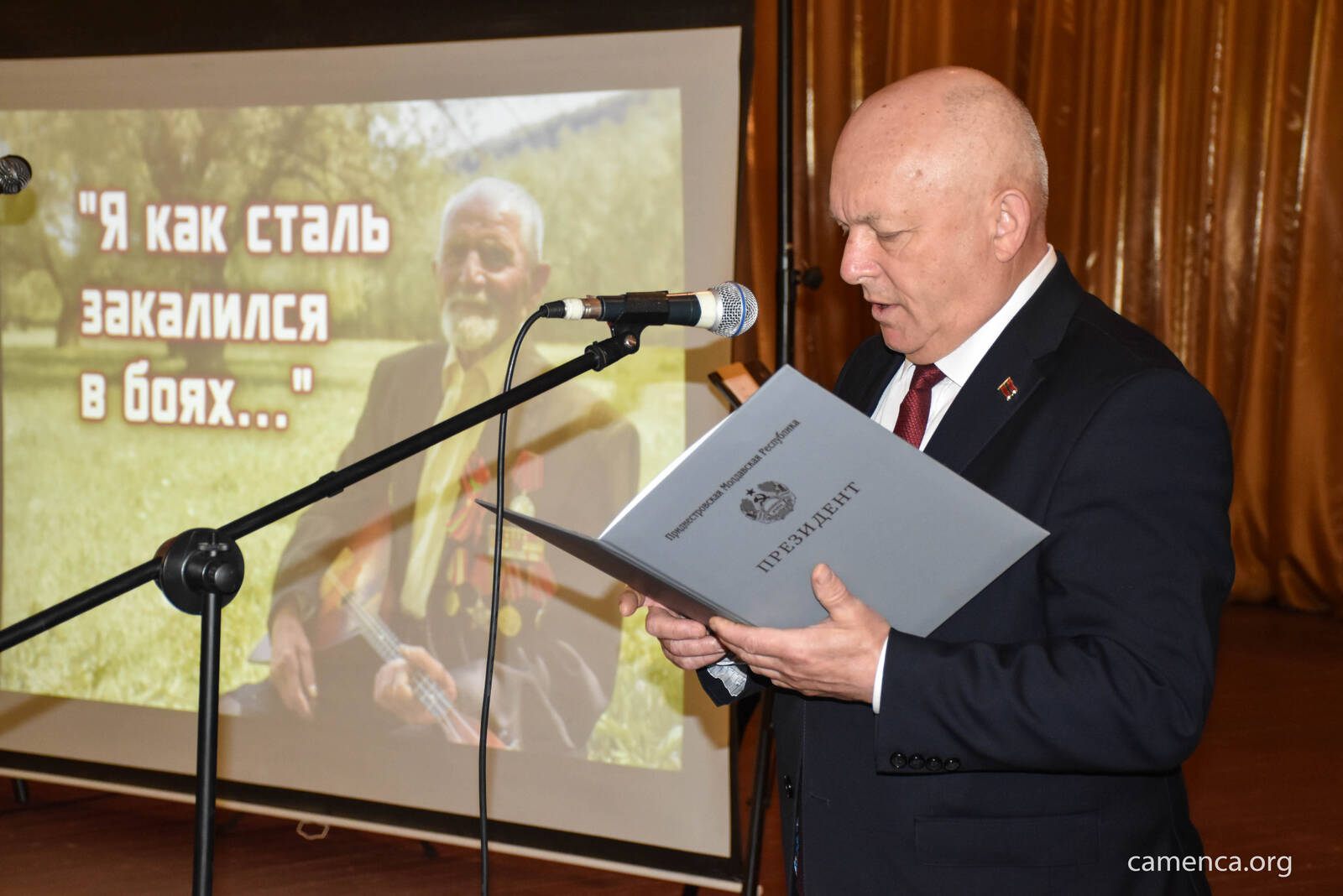 Каменский район, 2 мая. /Новости Приднестровья/. Накануне в Доме культуры села Рашков прошло праздничное мероприятие, посвящённое 100-летнему юбилею ветерана Великой Отечественной войны, жителя села Янтарное Ивана Ивановича Сичинского. С букетами тюльпанов и под звуки марша юбиляра встречали его односельчане, школьники и гости, сообщает пресс-служба каменской госадминистрации.
