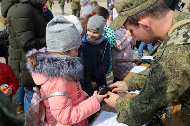 В рамках мероприятия также была организована экскурсия по воинской части для учащихся подшефной средней школы села Ближний Хутор. Педагогам, школьникам и сопровождавшим их родителям показали различные виды вооружения полка, бронетехнику, средства связи, а также рассказали об особенностях службы в воинской части.