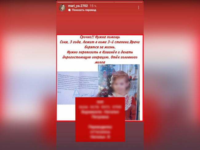 Тирасполь, 11 января. /Новости Приднестровья/. В социальных сетях распространяется информация о сборе денег на проведение операции ребёнку. Министерство здравоохранения ПМР официально заявило о том, что вся необходимая медицинская помощь девочке оказывается на базе Республиканского центра матери и ребёнка. В оперативном вмешательстве она не нуждается.