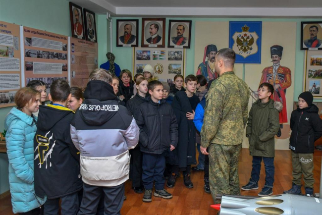 Им показывали оружие, форменную одежду, боевые награды, рассказывали об историческом прошлом казаков