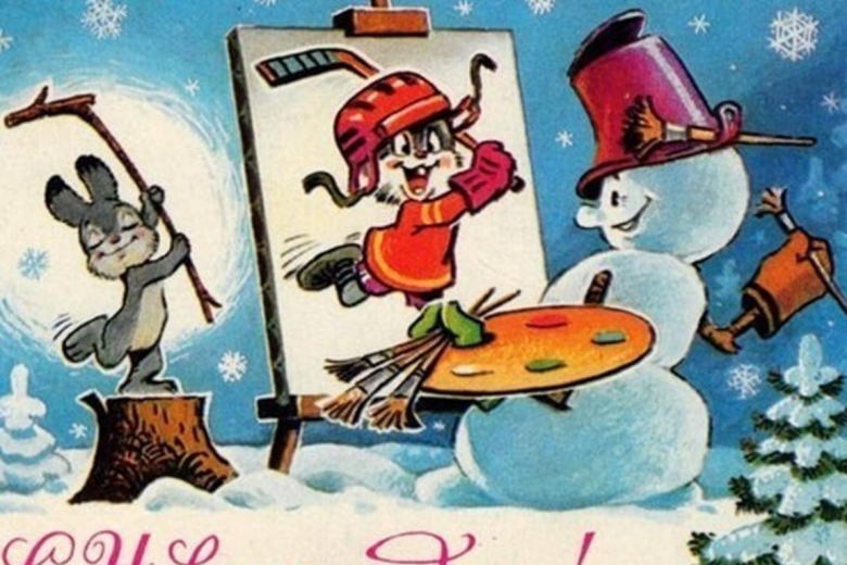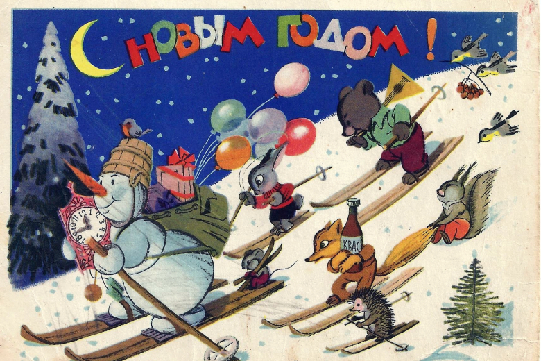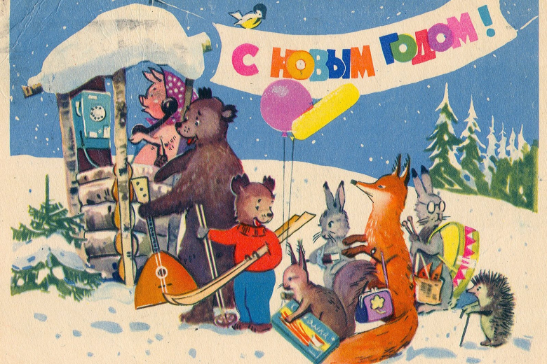 Также в новогодние праздники широкой популярностью пользовались поздравительные открытки.