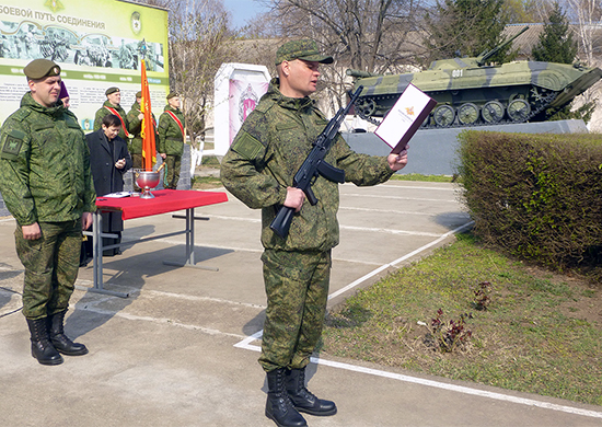 03 Апр.., 2020, 12:00Тирасполь, 3 апреля. /Новости Приднестровья/. В Оперативной группе российских войск (ОГРВ) в Приднестровье прошла торжественная церемония приведения военнослужащих по контракту к Военной присяге.