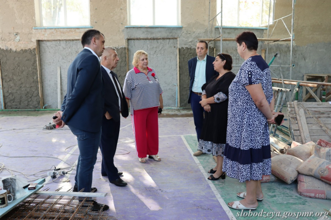 Глава слободзейской госадминистрации Василий Тищенко ознакомился с проводимыми работами по капитальному ремонту спортзала в местной школе № 1 им. А. Стоева.