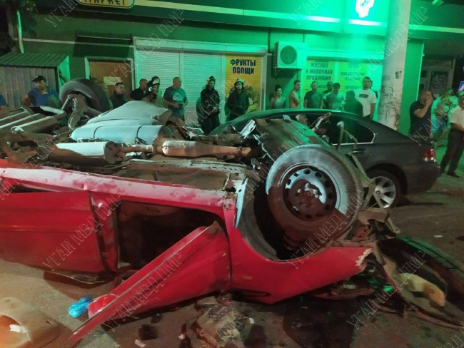 Красный Volkswagen от удара перевернулся несколько раз