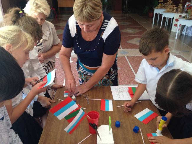 После познавательной программы провели мастер-класс «Триколор глазами детей», организованный руководителями образцовых коллективов декоративно-прикладного творчества. Детям необходимо было изготовить своими руками один из государственных символов — флаги России и Приднестровья.