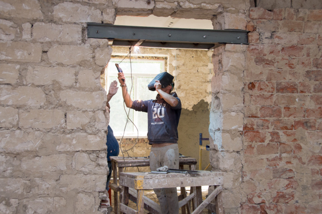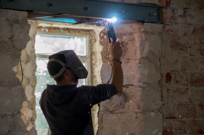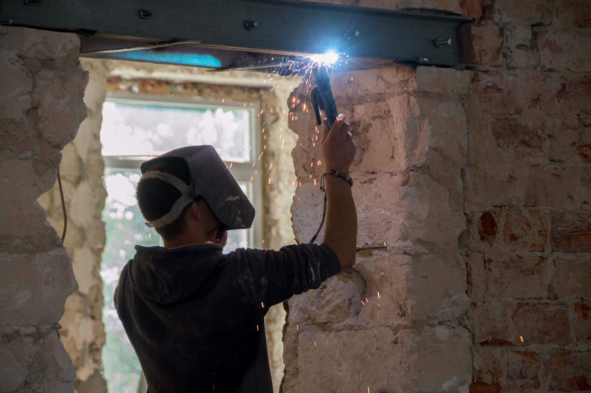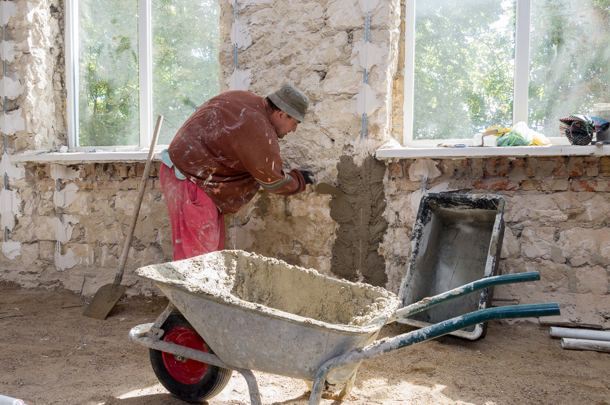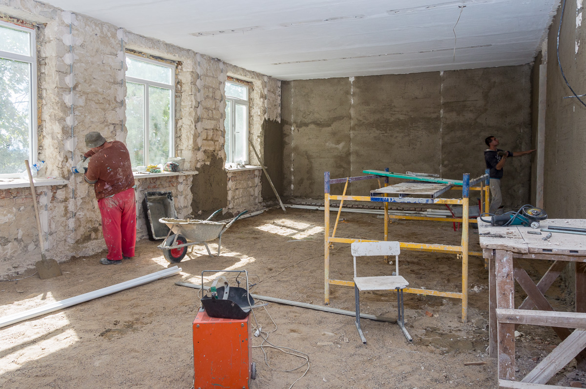 Впрочем, одной только перестройкой левого крыла работы здесь не ограничиваются. Звук инструментов слышен и в столовой, где будет новый пищеблок, и в коридорах, и в котельной.