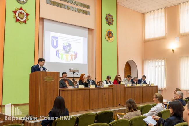 Докладчики - представители Конституционного суда, Правительства, Прокуратуры, аппарата Уполномоченного по правам человека в ПМР. Среди них и председатель Комитета Верховного Совета по образованию, науке, культуре, общественным объединениям, спорту, информационной и молодёжной политике Виталий Калин.