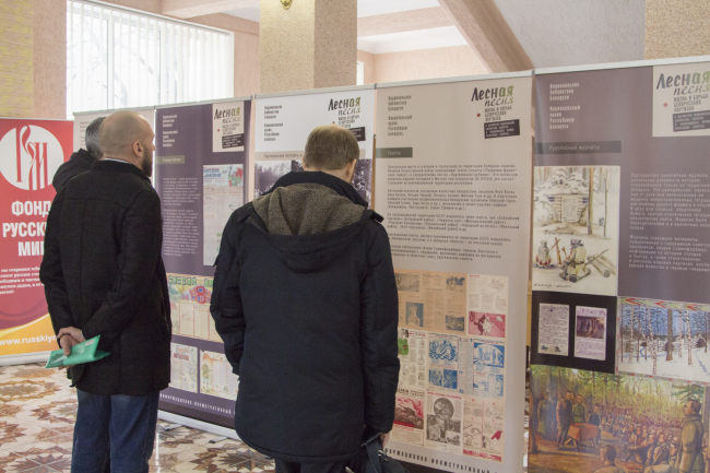 Тирасполь, 3 марта. /Новости Приднестровья/. В Приднестровском госуниверситете им. Т. Г. Шевченко открылась выставка, посвящённая 75-летию Победы в Великой Отечественной войне. В холле главного корпуса вуза представлены две экспозиции: «Беларусь живёт, Беларусь борется…» и «Лесная песня».