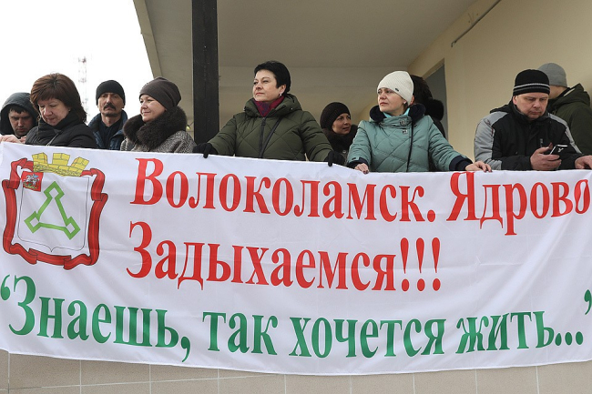 В подмосковном Волоколамске в пятницу в связи с ситуацией на мусорном полигоне «Ядрово» вступает в силу режим повышенной готовности. Спасатели раздают средства индивидуальной защиты жителям.